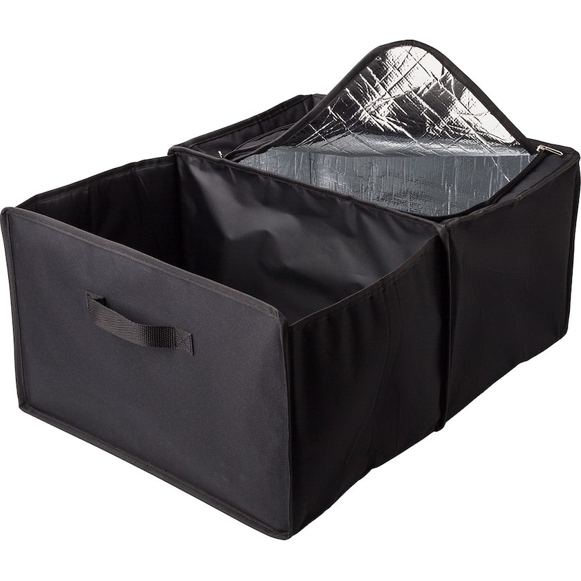 Organizzatore da auto per il portabagagli dell'auto. Uno degli scomparti viene utilizzato come scomparto termico. Pieghevole.