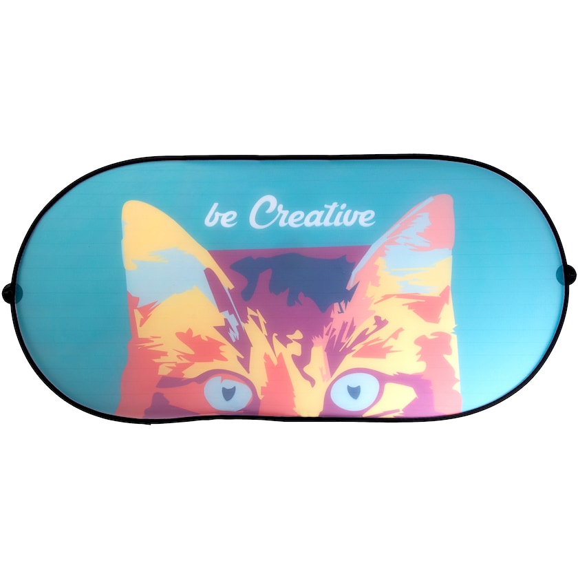 Protezione solare con stampa digitale per il finestrino anteriore dell'auto. Il parasole si può piegare insieme quando non in uso. Fornito con tappi di aspirazione. L'intera visiera parasole è stampata digitalmente.