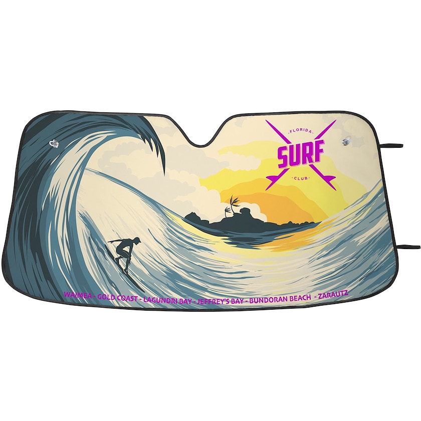 Parasole per auto per i parabrezza delle macchine personalizzate sull'intera superficie. Il parasole Lockhart è realizzato in poliestere con il retro con PU e due livelli con film a bolle in alluminio. Il parasole viene fissato con due ventose. Dato che il parasole viene prodotto in fabbrica dopo l'ordine il tempo di consegna è più lungo del normale.