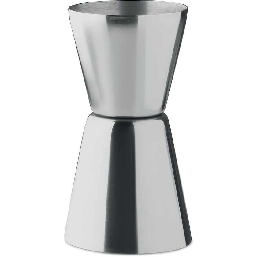 Misurino per cocktail in acciaio inox. Il misurino ha capacità 25 e 40 ml. La personalizzazione viene realizzata tramite incisione laser.