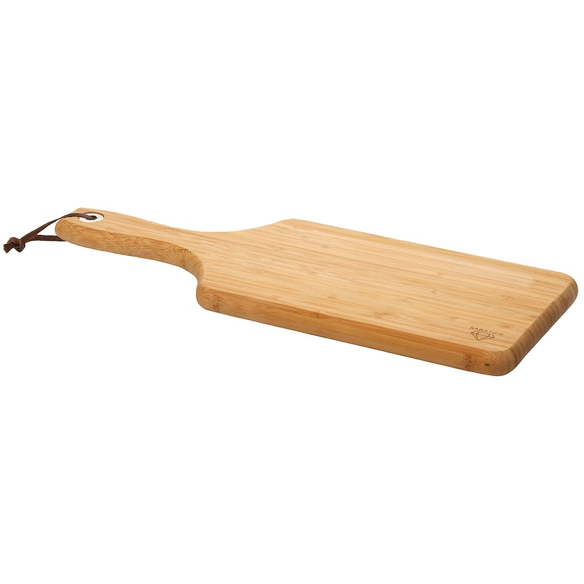 Tagliere esclusivo del marchio francese Diamant Sabatier. Blois è realizzato in bel bambù resistente. Questo tagliere è lucidato ed è quindi facile da tenere pulito e igienico. Il manico è dotato di un laccetto di cuoio con anello in metallo.