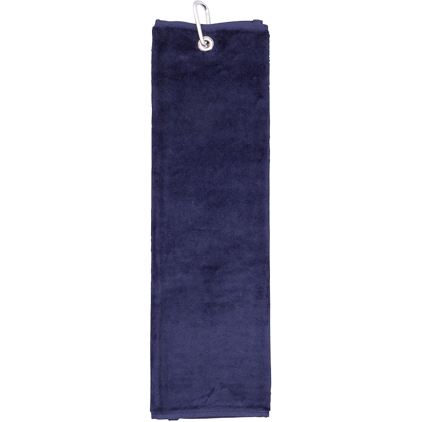 Asciugamano da golf in cotone con moschettone. Questo asciugamano da golf è realizzato in tessuto da 550 grammi ed è ripiegato tre volte. Il logo viene ricamato.