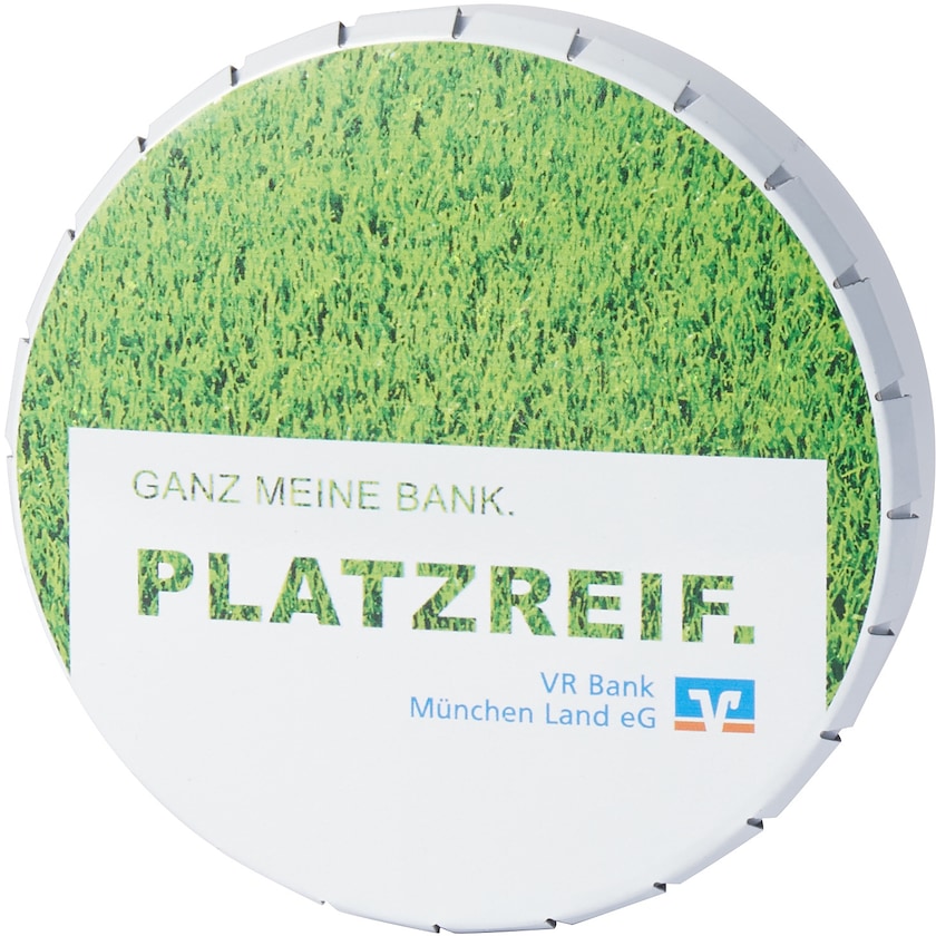 Scatola di latta contenente tee in colori a scelta. Questa scatola di latta contiene 15 tee da 70 mm. I prezzi includono la stampa digitale sul coperchio della scatola e in monocromia sui tee. La stampa sui tee può essere posizionata sul corpo (massima superficie personalizzabile: 34 x 4,3 mm) o sulla testa del tee (massima superficie personalizzabile: Ø 9 mm). Un bel regalo per tutti gli amanti del golf!