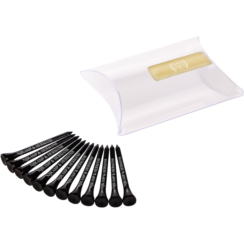 Set con 12 tee in una confezione trasparente. Il prezzo di stampa include la stampa su tutti i 12 tee e sulla confezione.