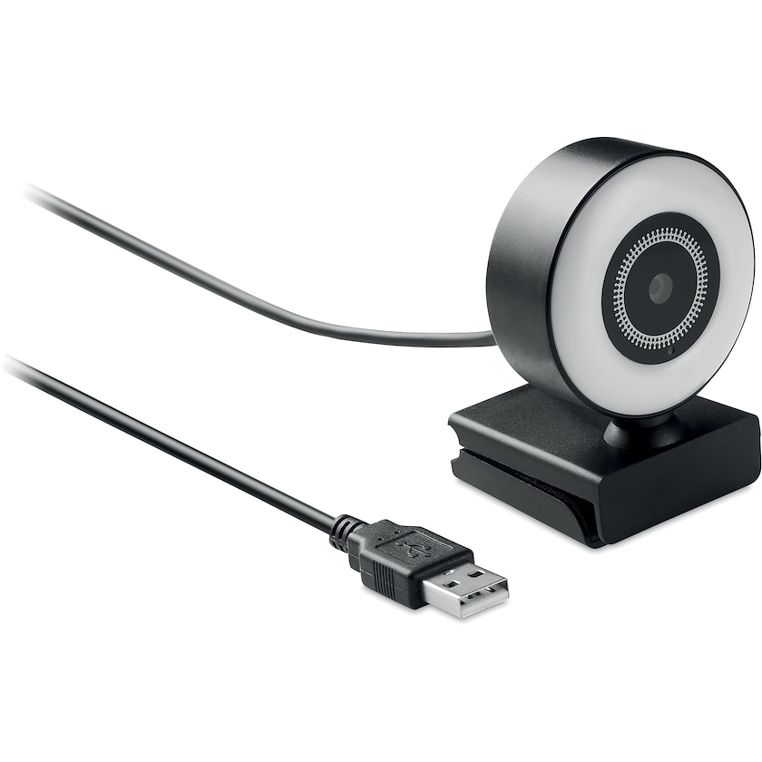 Webcam con microfono integrato con anello luminoso regolabile. Perfetta per le brevi riunioni davanti al computer. Grazie all'anello luminoso regolabile sarai illuminato nel modo migliore.
