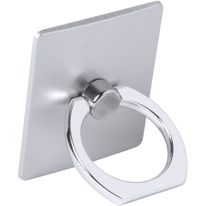 Supporto per cellulare cromato che può essere attaccato al lato posteriore del cellulare. Impala ha un lato posteriore autoadesivo che può facilmente essere attaccato al cellulare. Il supporto funziona anche come una maniglia quando si vuole fare un selfie. Stampa possibile al massimo a due colori.