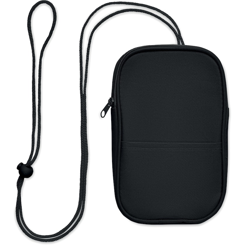 Conveniente borsa per cellulare in materiale riciclato. La borsa ha una tasca principale dotata di cerniera. Il laccio è regolabile.