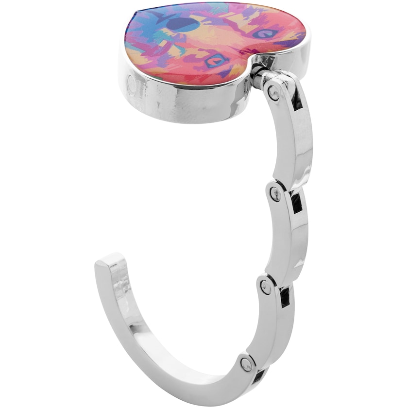 Gancio appendi borsa portatile a forma di cuore con stampa digitale. La stampa è posta sotto uno strato epossidico protettivo che conferisce un aspetto esclusivo. Quando il gancio per la borsa non viene utilizzato, viene tenuto insieme da un magnete. Viene fornito in una scatola regalo nera.