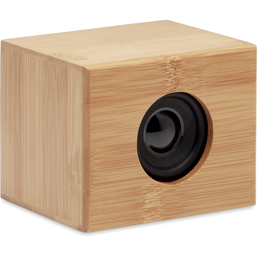 Altoparlante senza fili che funge anche da caricabatterie senza fili per telefono. Questo altoparlante è realizzato in bambù e ha un'autonomia d'uso di circa 4 ore con una ricarica completa. Scegli tra la stampa o l'incisione a laser del tuo logo.