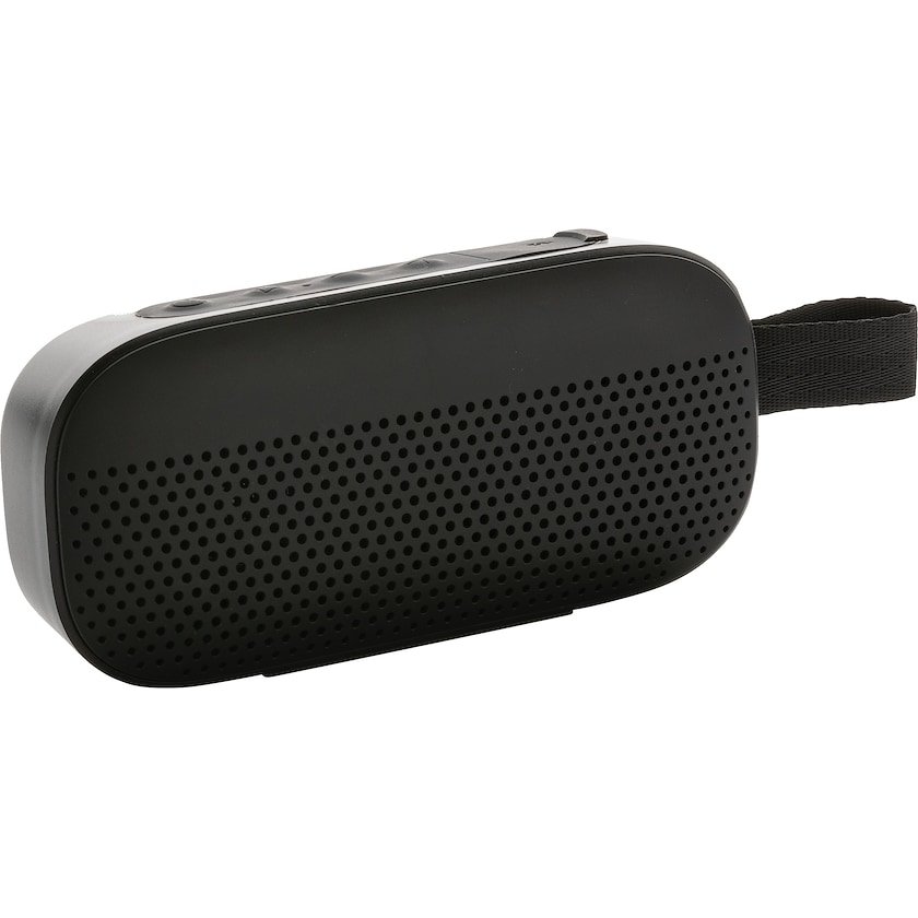 Potente altoparlante senza fili in materiale riciclato. L'autonomia d'uso è di 6 ore con una ricarica. L'altoparlante utilizza la rapida connessione BT5.3 per un suono di prima categoria. Resistenza all'acqua IPX5. Il raggio d'azione è 10 metri. Può ricevere telefonate. Consegnato in una scatola di cartone certificato FSC.