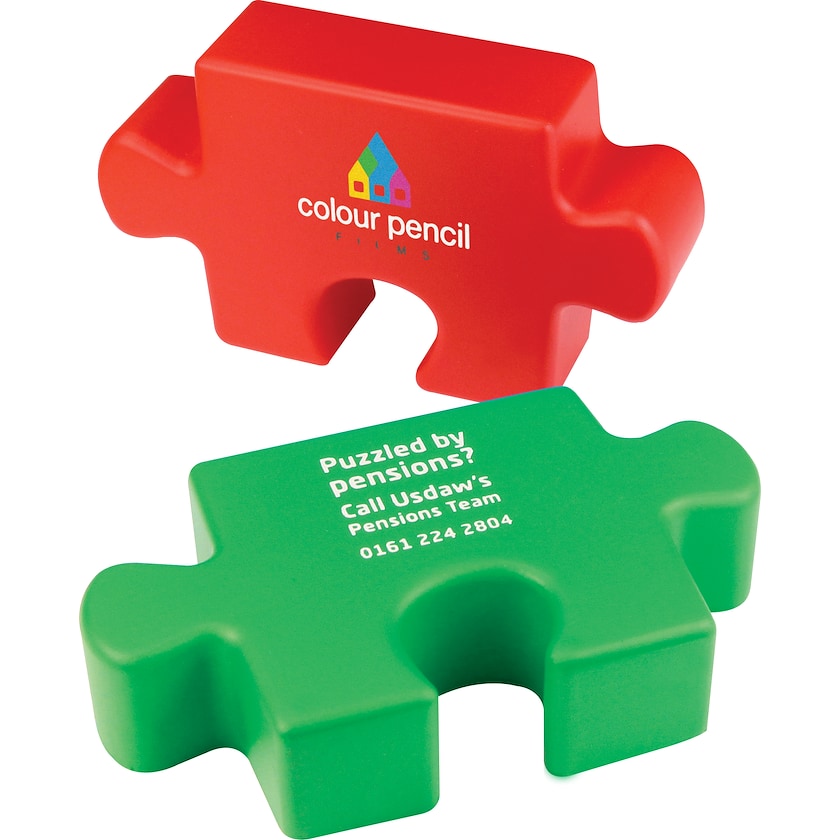 Pallina antistress a forma di pezzo di puzzle. Scegli tra questi colori: rosso, verde, blu, giallo e bianco. La stampa è di altissima qualità e resiste all'uso prolungato.