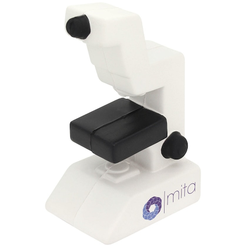 La pallina antistress perfetta per imprese di ricerca. La pallina antistress è a forma di microscopio. La stampa è della più alta qualità possibile e resiste all'uso prolungato.
