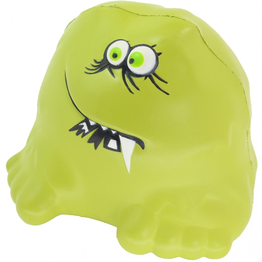 Pallina antistress verde a forma di bacillo. La stampa mantiene una qualità molto alta e resiste all'uso prolungato della pallina.