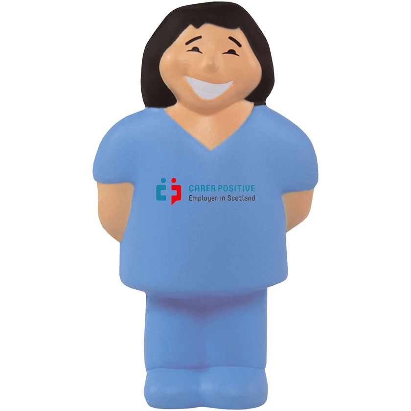 Pallina antistress a forma di infermiera. Il prodotto promozionale perfetto per chi lavora nei servizi sanitari e assistenziali. Fà buona pubblicità alla tua azienda mentre aiuta i muscoli a rilassarsi.