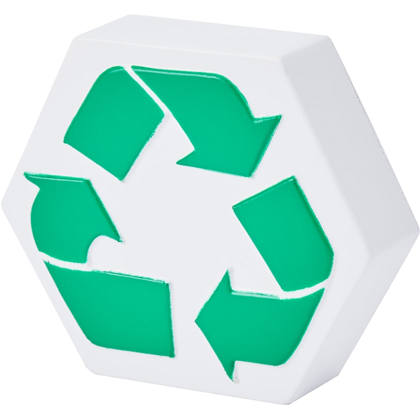 Pallina antistress con simbolo di riciclaggio. Le stampe realizzate da Axon Profil sulle palline antistress sono di altissima qualità e resistenti all'uso prolungato.