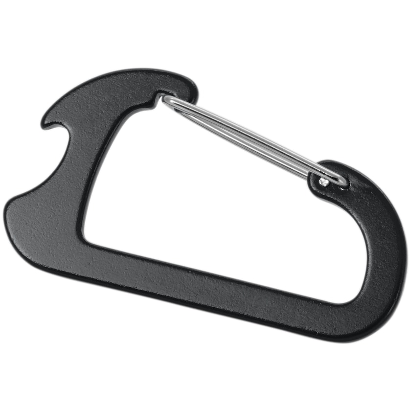 Apribottiglie a forma di moschettone. Scegli tra stampa a un colore o incisione a laser. Il moschettone non è adatto all'arrampicata.