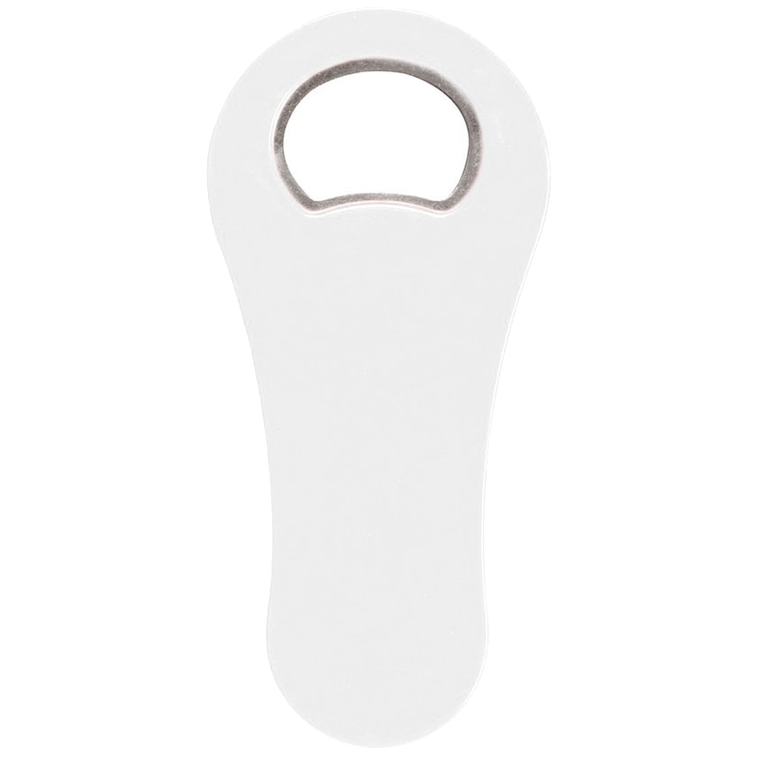 Questo pratico apribottiglie è anche una calamita da frigo. La stampa digitale viene posizionata sotto una superficie protettiva di resina epossidica.