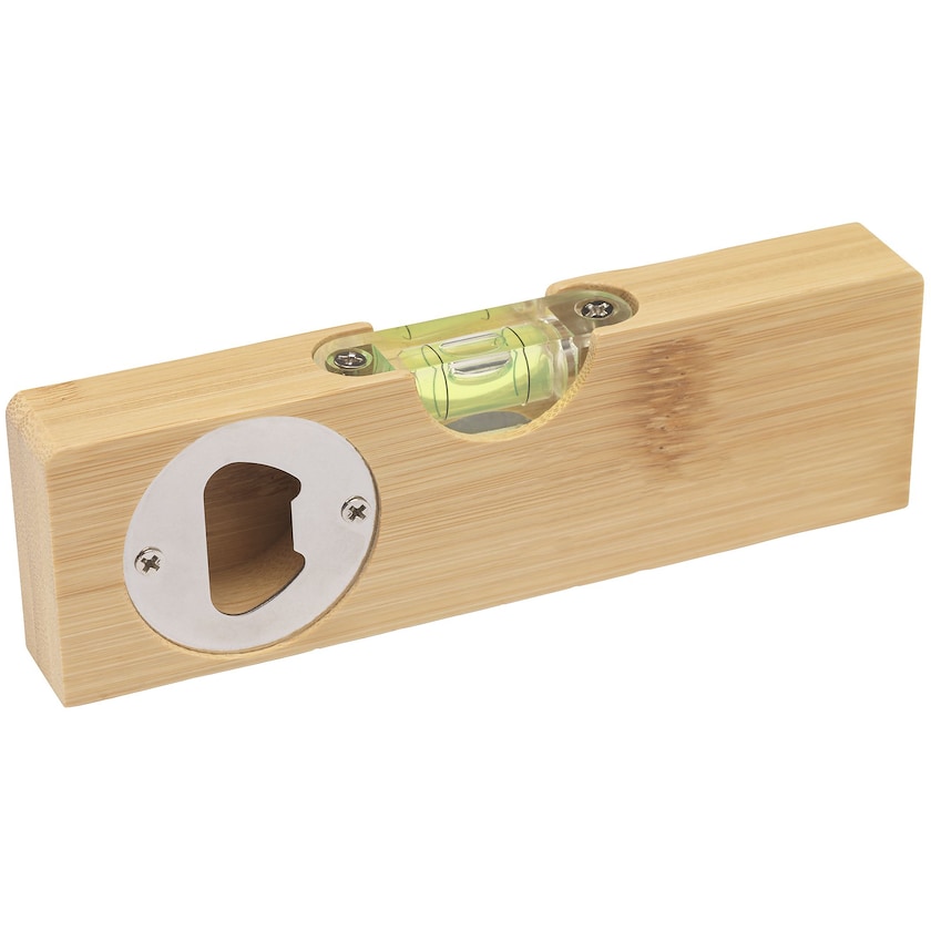 Livella a bolla d'aria in bambù con apribottiglie incorporato. Rimboccati le maniche e poi goditi una bella bibita! Il bambù è un materiale naturale ed ecosostenibile. I colori e le dimensioni possono variare leggermente da esemplare a esemplare. Questa livella viene confezionata singolarmente in una bella scatola regalo. Il logo può essere stampato o inciso a laser.