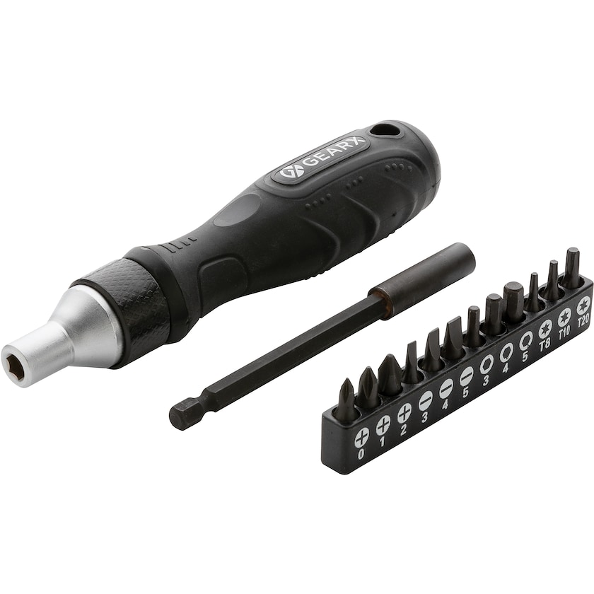 Cacciavite di alta qualità con tante punte. Viene personalizzato con una stampa digitale posizionata al di sotto di uno strato protettivo di resina epossidica. Il set viene consegnato all'interno di una bella confezione regalo.
