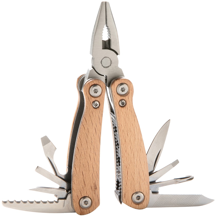 Attrezzi multiuso compatti in legno di faggio e acciaio inossidabile. Garrix ha 12 funzioni e viene consegnato in una bella confezione regalo.