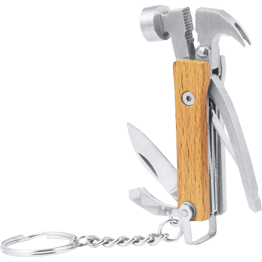 Attrezzo multiuso in formato compatto. Lynnville ha sette funzioni ed è realizzato in acciaio inox e legno.