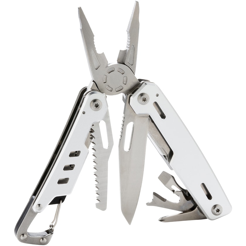 Multifunzione di alta qualità con 11 funzioni. La custodia è in alluminio e gli strumenti sono in acciaio inossidabile. Fornito in un'elegante confezione regalo.