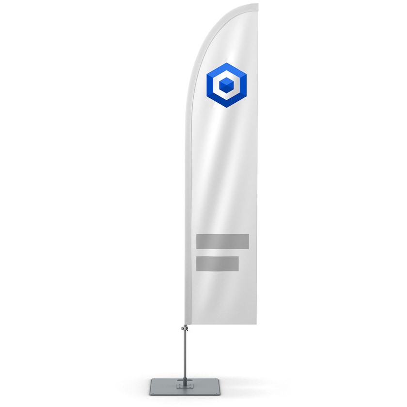 Bandiera da spiaggia da 310 cm con popolare forma a pinna di squalo. Questa pinna pubblicitaria da spiaggia è leggera, durevole e ha un'ampia superficie personalizzabile. Il prezzo si riferisce alla pinna pubblicitaria con stampa su un lato, asta e custodia. Perfetta per uso esterno. Non dimenticare di completare il tutto con una base per fissarla al terreno.