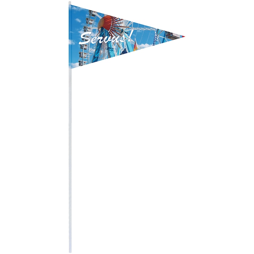 Bandierina di carta personalizzata. La bandierina è realizzata in carta ed è incollata a un bastoncino di plastica eco-compatibile prodotto con 70% di materiali riciclati. Personalizzabile con stampa su entrambi i lati.