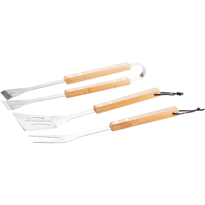 Set da griglia esclusivo con 3 utensili. Sono fabbricati in acciaio inox di qualità con manico in bambù. Fornito in una elegante confezione regalo. Il prezzo della personalizzazione si riferisce su la stampa su uno degli strumenti.