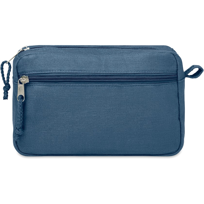 Beauty case di canapa ecocompatibile e resistente. Sul davanti si trova una piccola tasca. La canapa è tre volte più forte del cotone e come tessuto ricorda il lino. Questo materiale non ha bisogno di fertilizzanti o pesticidi. Per di più, la pianta di canapa assorbe più anidride carbonica di quanta non ne venga emessa per la sua produzione.
