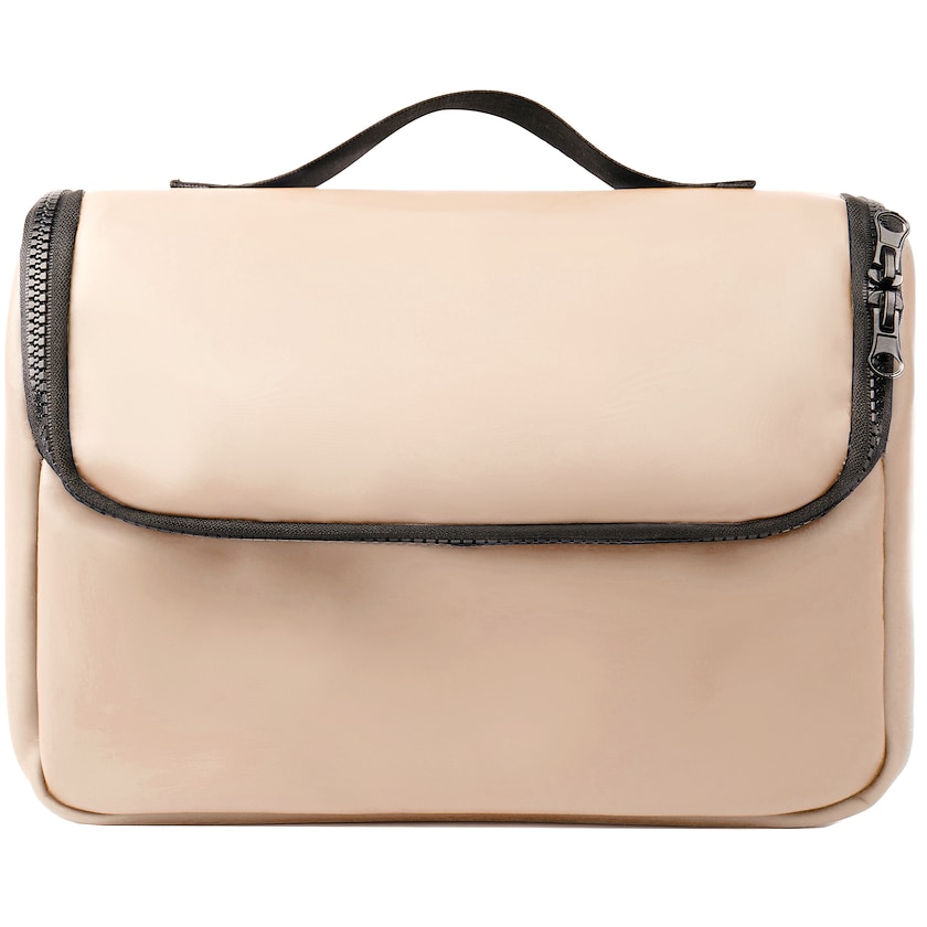 Beauty case in simil pelle idrorepellente. Il materiale è facile da lavare. L'interno offre diverse tasche per oggetti più piccoli. Il beauty case è fornito di un gancio che lo rendono facile da appendere.