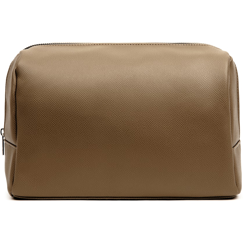 Beauty case dal design classico. L'esterno è realizzato in simil pelle riciclata. Grazie alla lunga cerniera è facile raggiungere il contenuto.