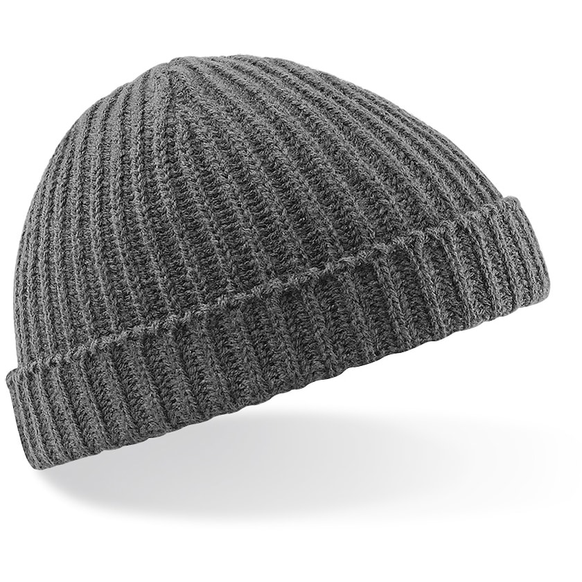 Zuccotto alla moda in maglia lavorata a coste. Il berretto è per adulti, ma veste piccolo.