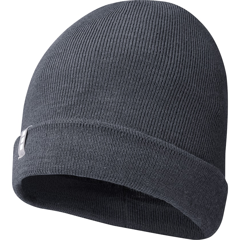 Berretto ecologico Elevate. Sul berretto si trova una piccola etichetta che indica il marchio Elevate. Questo berretto è realizzato al 60% in polylana e al 40% in acrilico. La polylana è un'alternativa più sostenibile all'acrilico e alla lana perché la realizzazione di questo materiale riduce i consumi di acqua ed energia, così come le emissioni di anidride carbonica necessarie alla sua produzione.