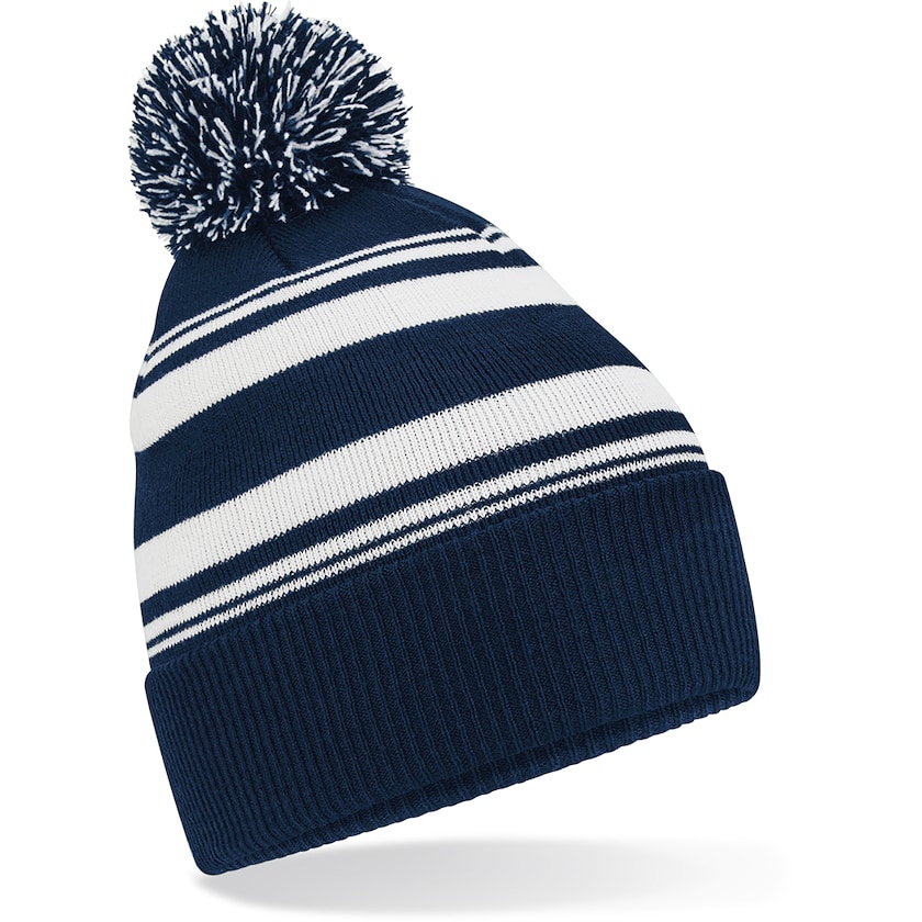 Berretto a righe con grande pompon. Il berretto è realizzato almeno al 50% in poliestere riciclato e 50% in poliestere normale. Un bel berretto che è anche una buona scelta per l'ambiente.