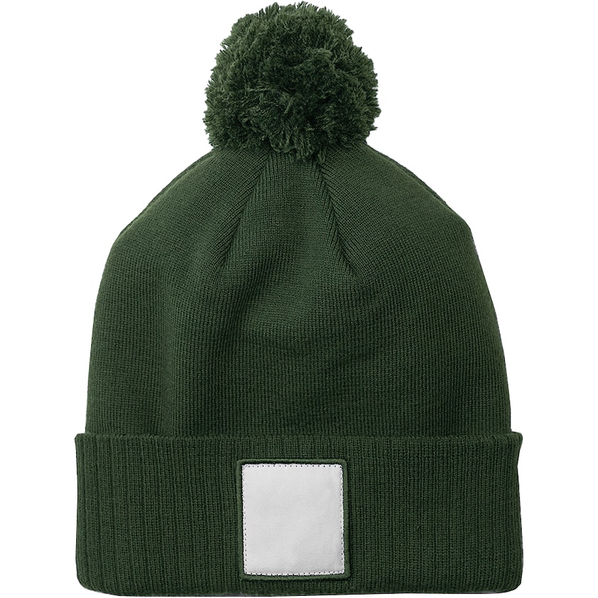 Berretto ecologico con etichetta bianca in tessuto. Il berretto ha un bel tessuto a costine in poliestere riciclato. L'etichetta può essere personalizzata con stampa digitale o ricamo. Il berretto ha una fodera in pile che tiene al caldo anche nei giorni più freddi.