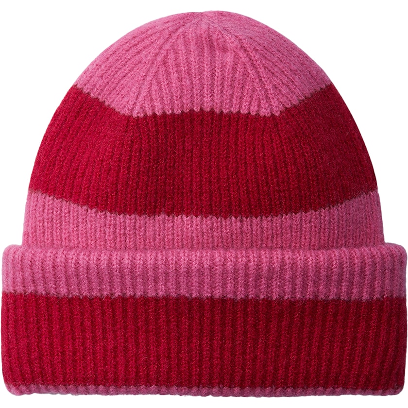 Lussuoso berretto con morbido tessuto a costine. Il berretto è realizzato in 53% poliestere, 33% nylon, 10% acrilico e 4% elastan. Il poliestere è riciclato al 50% e certificato secondo Control Union CU811033.