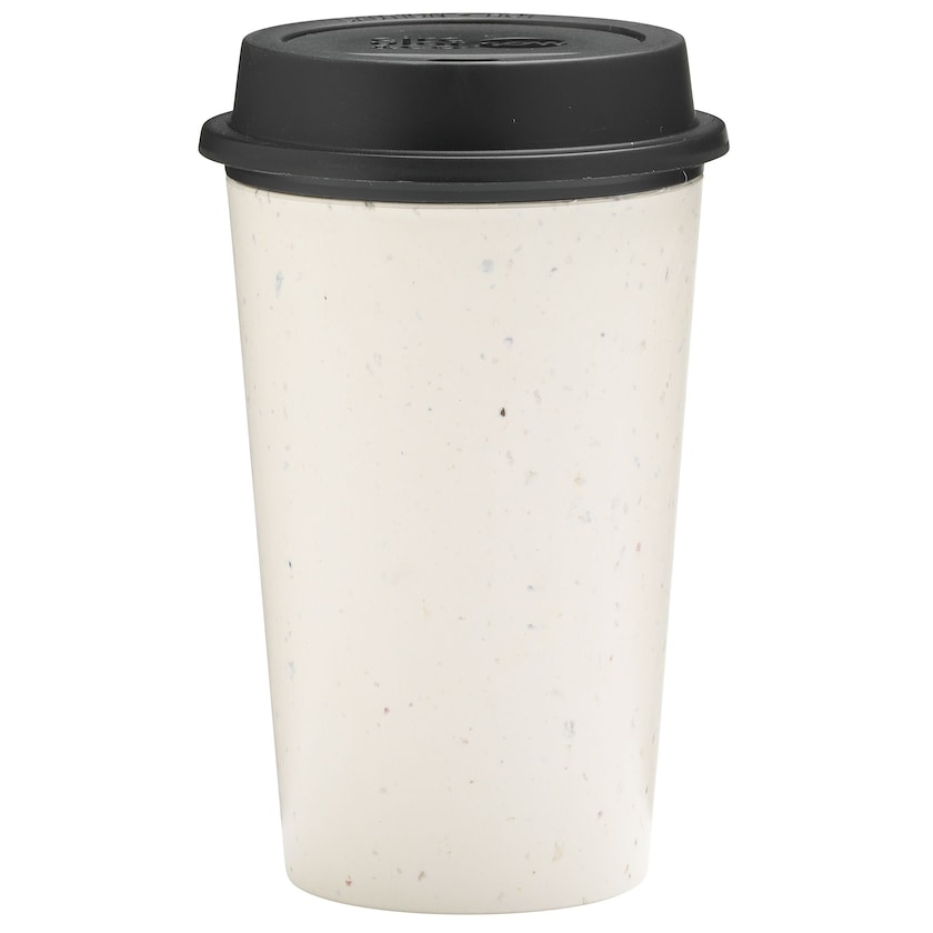 Bicchiere take away ecologico di Circular & Co. Questo bicchiere è dotato di pareti doppie che mantengono calde le bevande a lungo. Lo strato esterno isolante è realizzato con bicchieri da caffè monouso di carta usati e riciclati. La parete interna e il tappo sono in polipropilene. È adatto al contatto alimentare e non contiene BPA. Prodotto in Europa. Se si opta per la stampa a due colori, la superficie di stampa è di ben 70 x 25 mm.