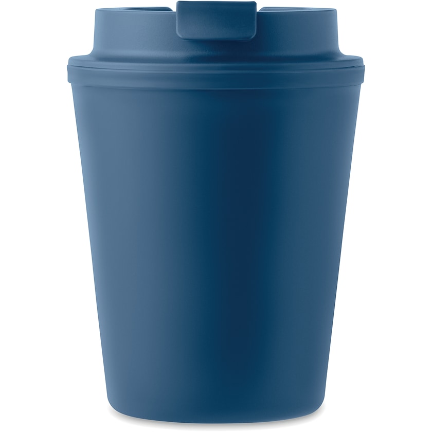 Bicchiere take away ecologico con pareti doppie. Le sue pareti doppie permettono di tenere le bevande calde a lungo. Se si opta per la stampa a un colore, la superficie di stampa è di ben 220 x 50 mm.