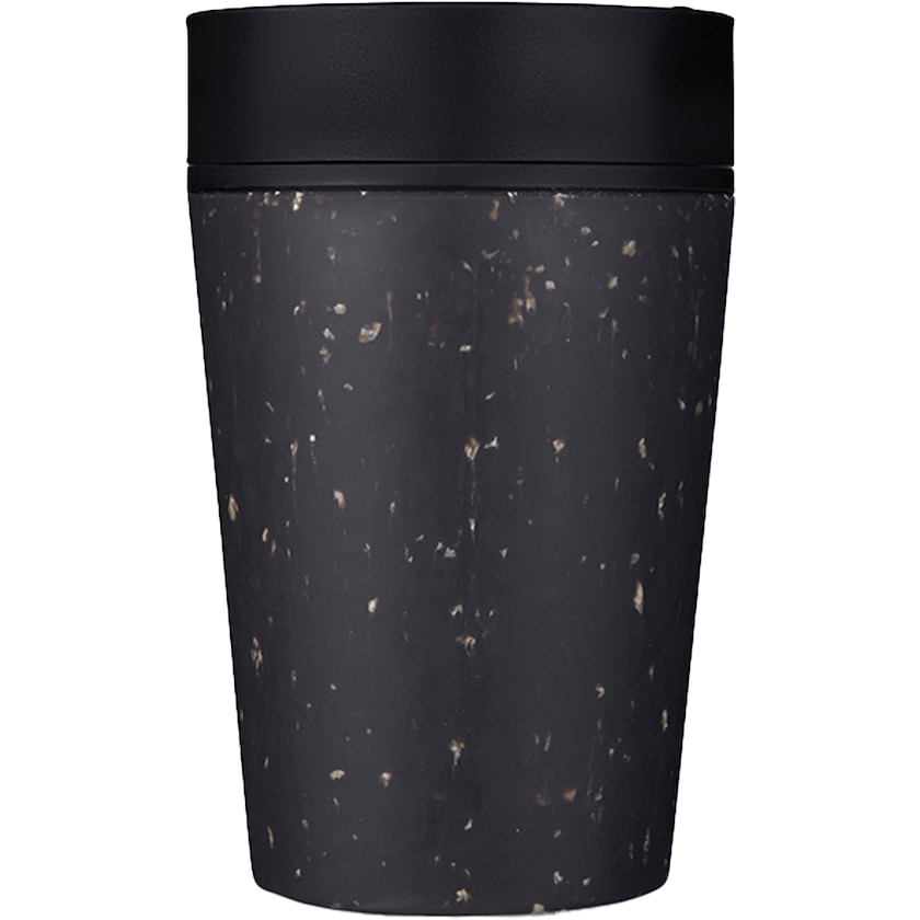Piccolo bicchiere take away in materiale riciclato. Questa tazza è dotata di pareti doppie. Lo strato esterno isolante è realizzato con bicchieri da caffè monouso di carta. La parete interna e il tappo sono in polipropilene. 100% chiusura ermetica. Il tappo ha un design brevettato che permette di bere da qualsiasi lato si voglia. Il tappo può essere aperto o chiuso con una sola mano. Prodotto in Europa. Se si opta per la stampa a due colori, la superficie di stampa è di 80 x 25 mm.