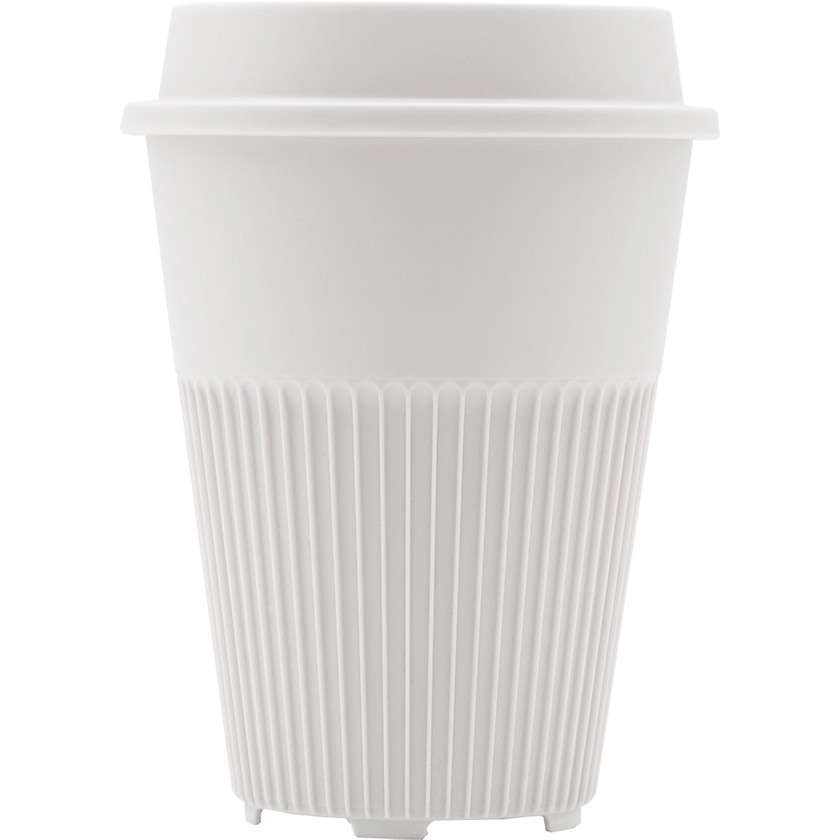 Bicchiere take away Circular & Co. Il bicchiere è resistente, riutilizzabile, impilabile e completamente riciclabile. Le nervature fanno in modo che il bicchiere non diventi inutilmente caldo e conferiscono una buona presa. Il fondo si asciuga velocemente. Il tappo ha una pratica apertura per bere. Adatto ai portabicchieri da auto e alla macchinetta del caffè al lavoro. Adatto a prodotti alimentari e privo di BPA. Deve essere lavato nel cestello superiore della lavastoviglie.