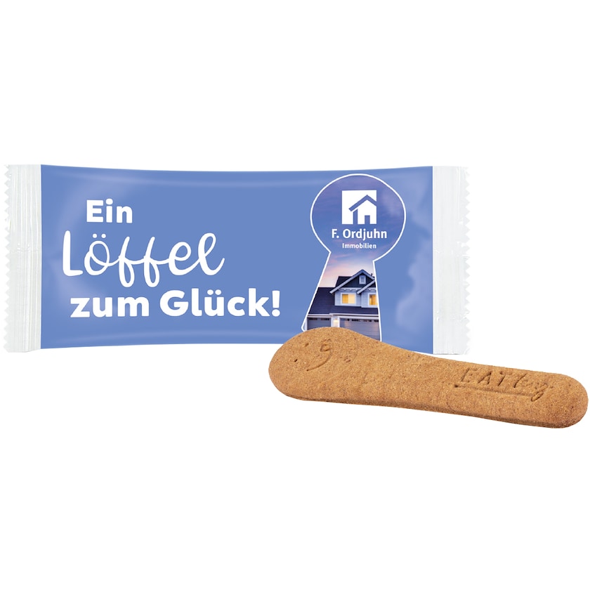 Biscotto a forma di cucchiaio in flowpack personalizzato. Questo biscotto è preparato con grandi duro ed è assolutamente delizioso. Ecco un buon biscotto che sarà sicuramente apprezzato durante la pausa caffè.