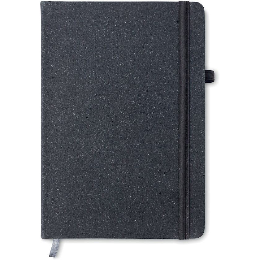 Taccuino con copertina in PU riciclato. Camborne contiene 80 fogli a righe. Un elastico permette di tenere chiuso il taccuino.