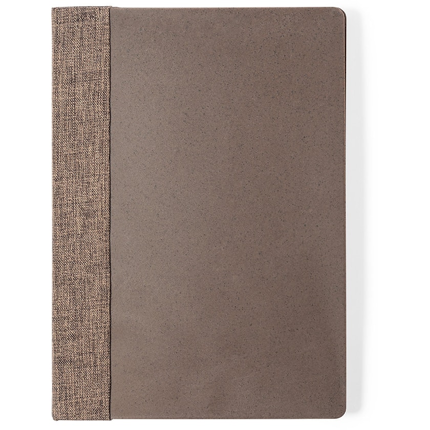 Quaderno ecologico con copertina in fibre di caffè. L'inserto contiene 100 fogli a righe. Sul retro della copertina sono stampate le informazioni su come sia realizzata in fibre di caffè.