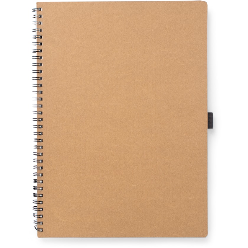 Blocco per appunti a spirale ecologico con inserto in carta di pietra. La carta di pietra è un tipo di carta ecologica che per di più è resistente all'uso e all'acqua. L'inserto contiene 60 foglia a righe. La copertina è realizzata in carta normale. Ogni quaderno viene confezionato singolarmente in una busta di materiale biodegradabile.