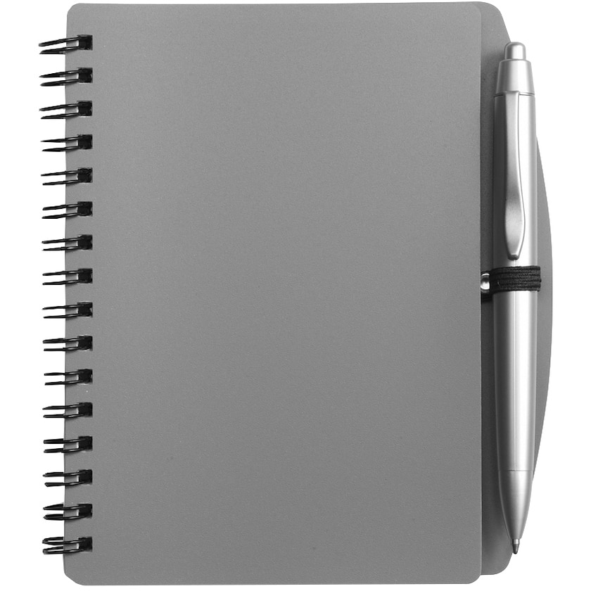 Blocchetto per gli appunti in formato A6 con copertina satinata e penna inclusa.