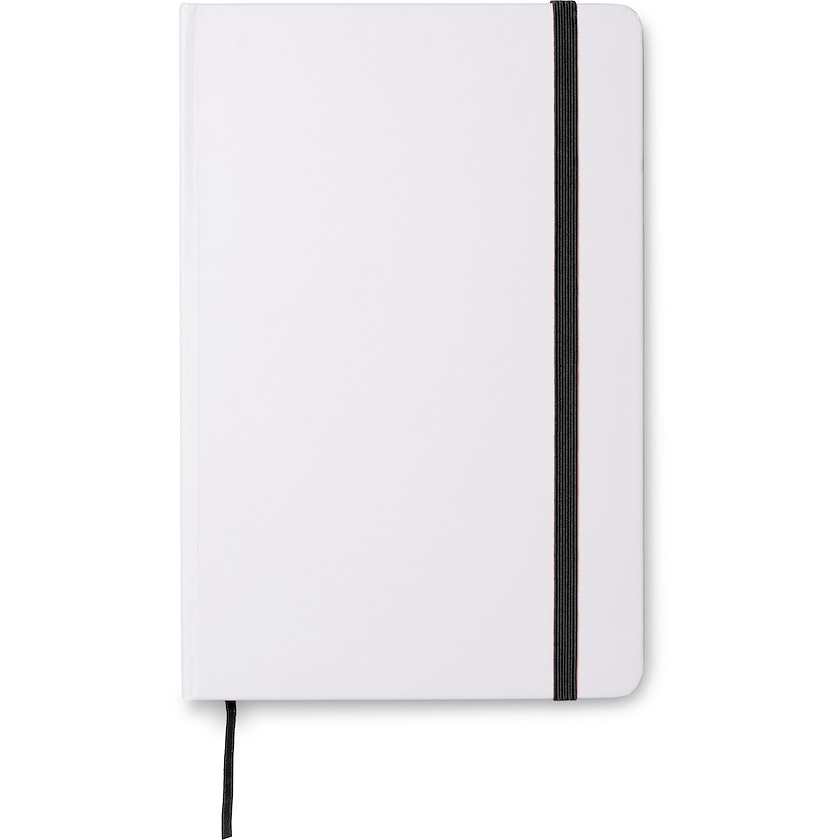 Taccuino in formato A5 con possibilità di stampa digitale. La copertina è in simil pelle bianca e l'inserto contiene 100 fogli bianchi. Grazie alla tecnica di stampa utilizzata sarà possibile stampare motivi anche molto complessi in tanti colori.
