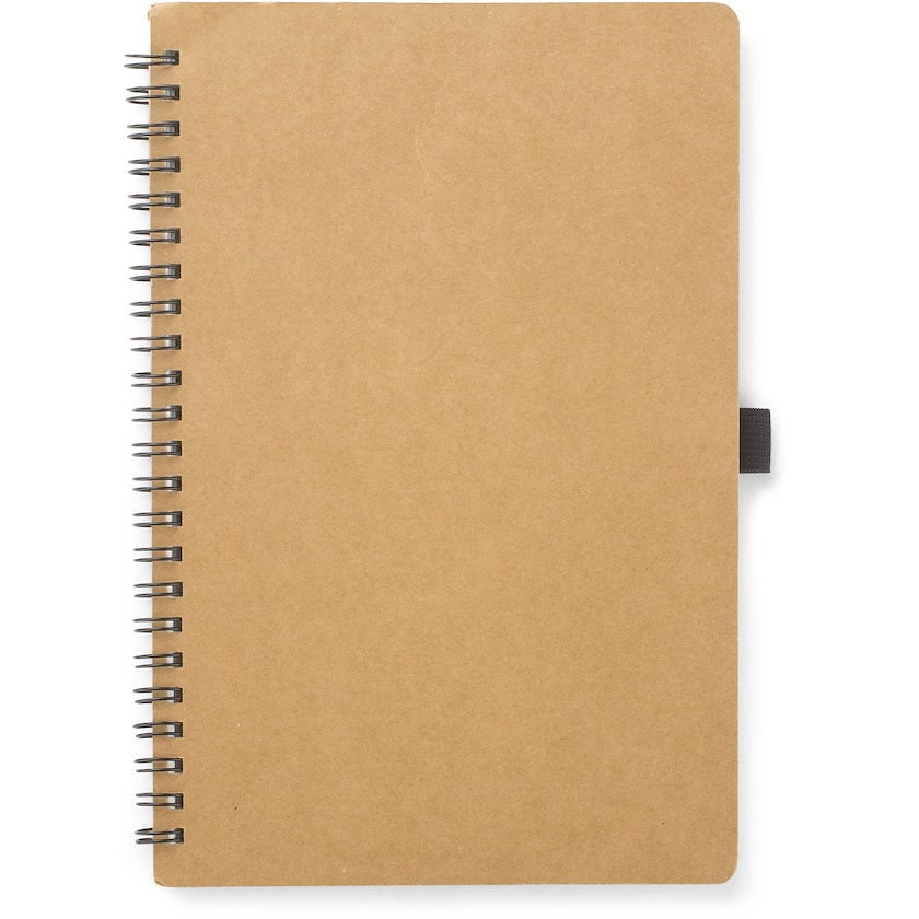 Blocco per appunti a spirale con inserto in carta di pietra ecologica. La carta di pietra è resistente all'uso e all'acqua. L'inserto contiene 60 fogli a righe. La copertina è realizzata in carta normale. Questo blocco per appunti viene confezionato singolarmente in una busta di materiale biodegradabile.