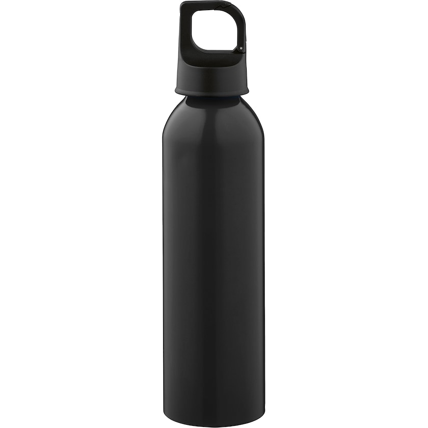 Borraccia a chiusura ermetica in alluminio riciclato. Il tappo è dotato di un moschettone che rende possibile attaccare la borraccia ad uno zaino per esempio. La stampa può essere realizzata in massimo un colore.