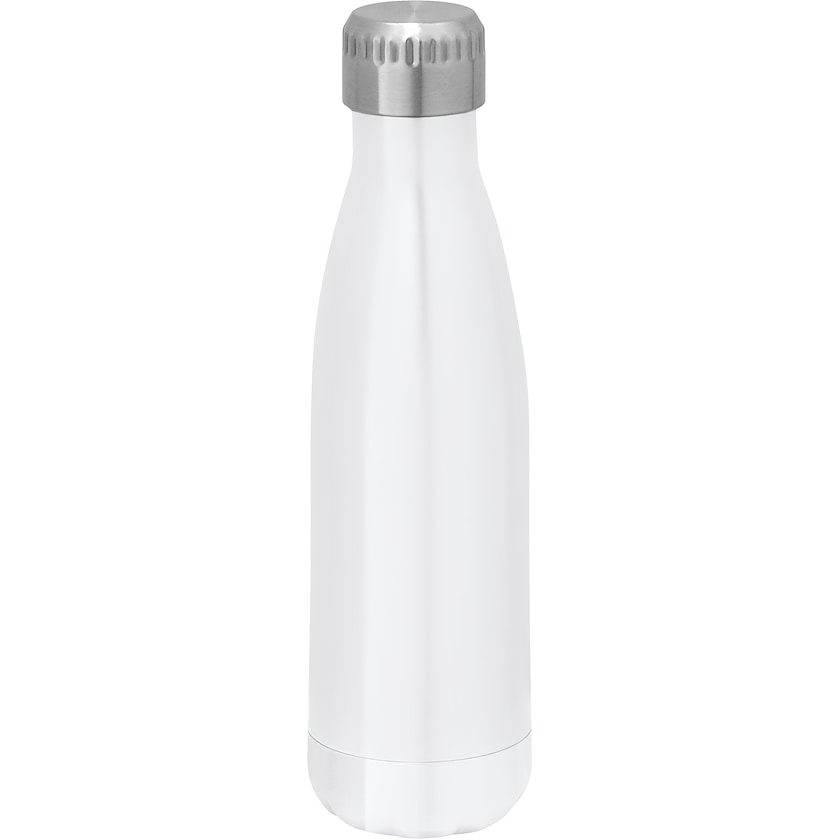 Borraccia stampata digitalmente che funge anche da termos. Le pareti doppie e il sistema di sottovuoto permettono di tenere a lungo le bibite al caldo. Anche le bibite fredde restano alla loro temperatura molto più a lungo. La borraccia è in alluminio, mentre il tappo è in acciaio inox. La personalizzazione viene realizzata con stampa digitale. Viene consegnata in una confezione regalo bianca.